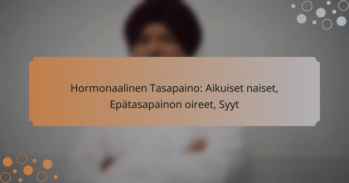 Hormonaalinen tasapaino on keskeinen tekijä aikuisen naisen terveydessä ja hyvinvoinnissa, vaikuttaen muun muassa mielialaan, energiatasoon ja lisääntymisterveyteen. Epätasapaino voi ilmetä monin eri tavoin, ja sen oireet vaihtelevat yksilöllisesti, aiheuttaen fyysisiä ja emotionaalisia häiriöitä. Useat tekijät, kuten elämänvaiheet, elintavat ja ympäristötekijät, voivat vaikuttaa hormonitasoihin ja siten hormonaaliseen tasapainoon.